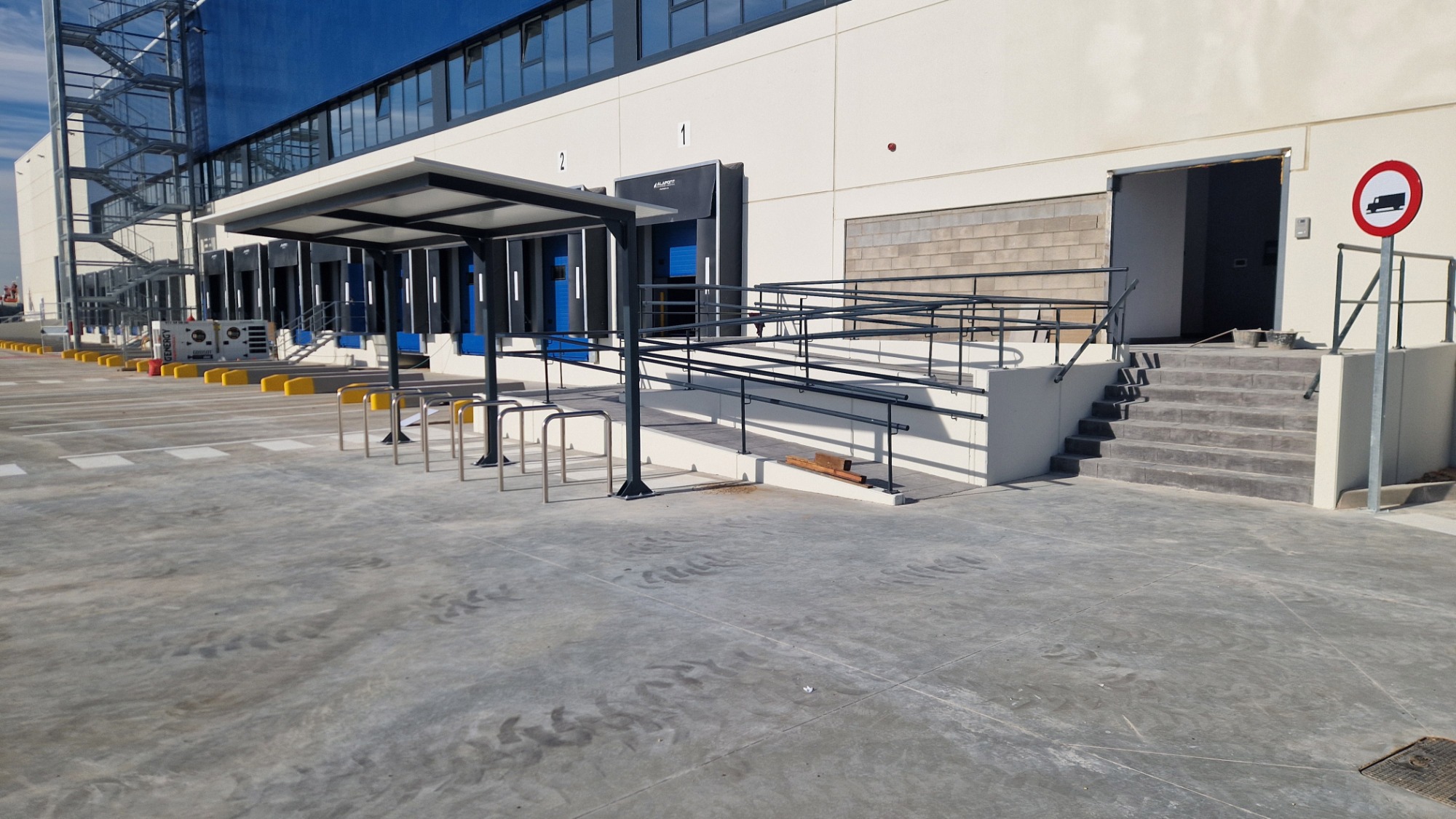 - Acceso peatonal centralizado separando flujos de nave y oficinas