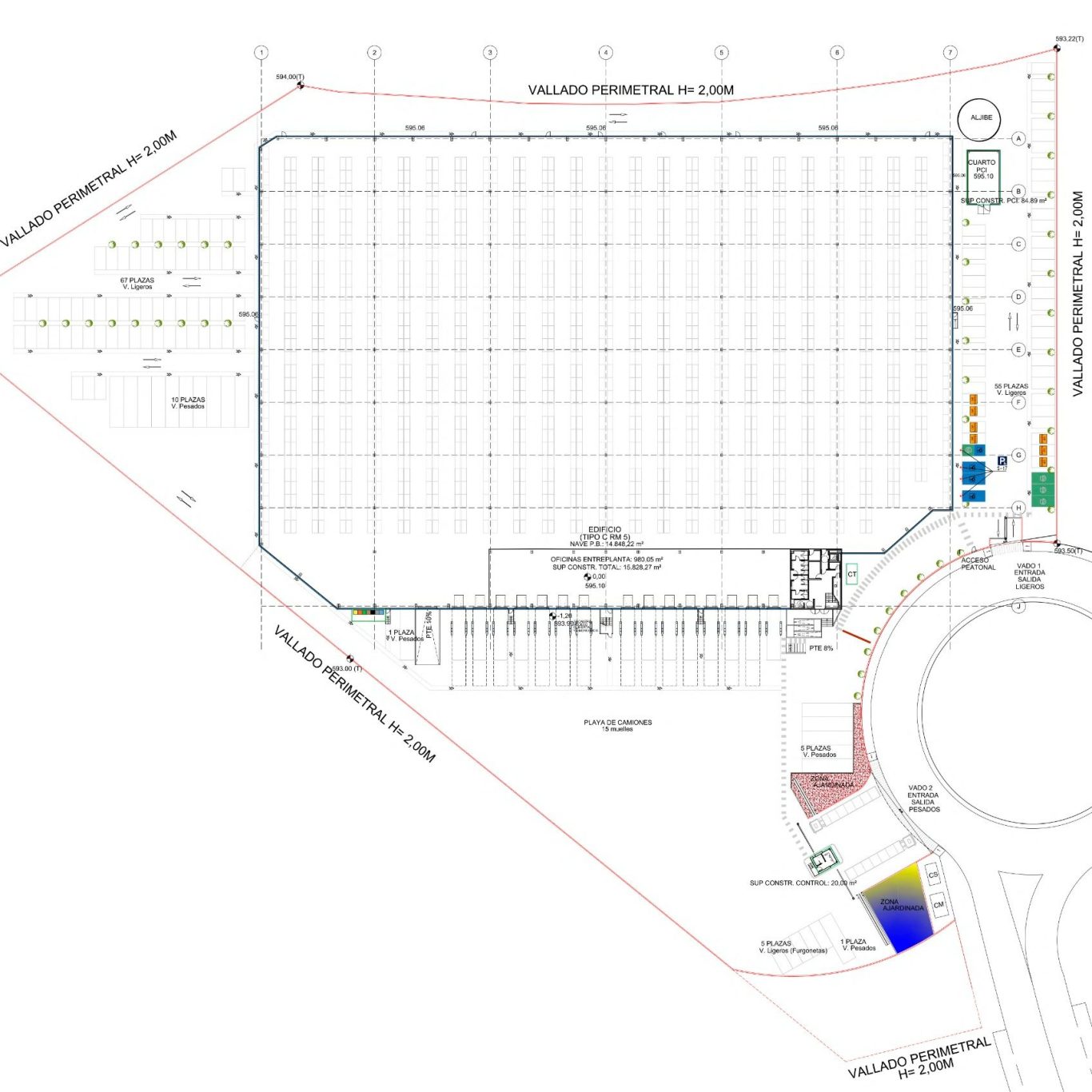 Campa de hasta 77ml integrando acceso / salida y atraque de camiones, circulación y maniobras con: