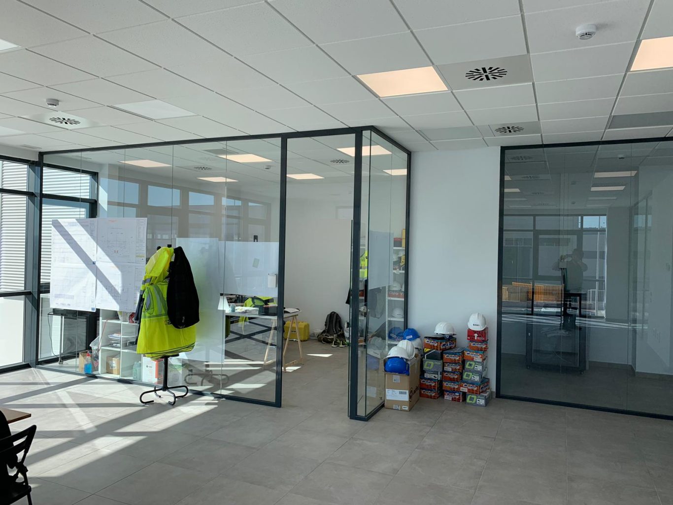 - Nave A: Formalización de oficinas operativas sobre sala de carga de baterías permitiendo la visualización libre del interior de la nave.