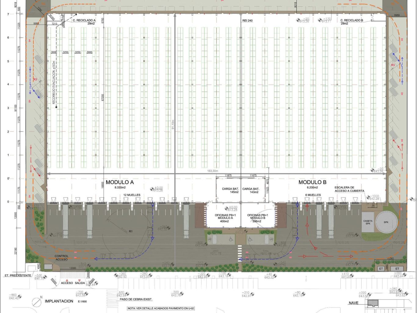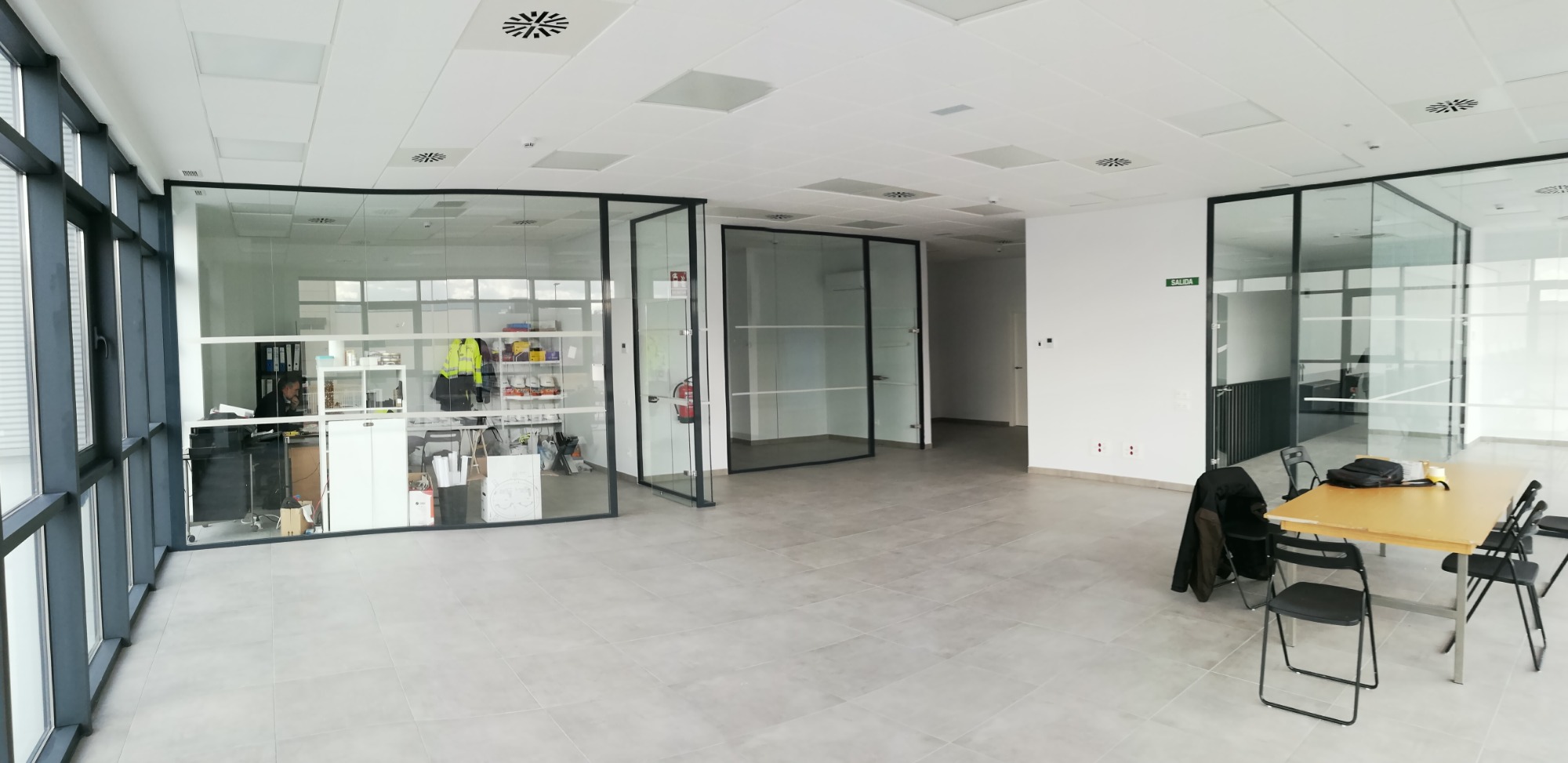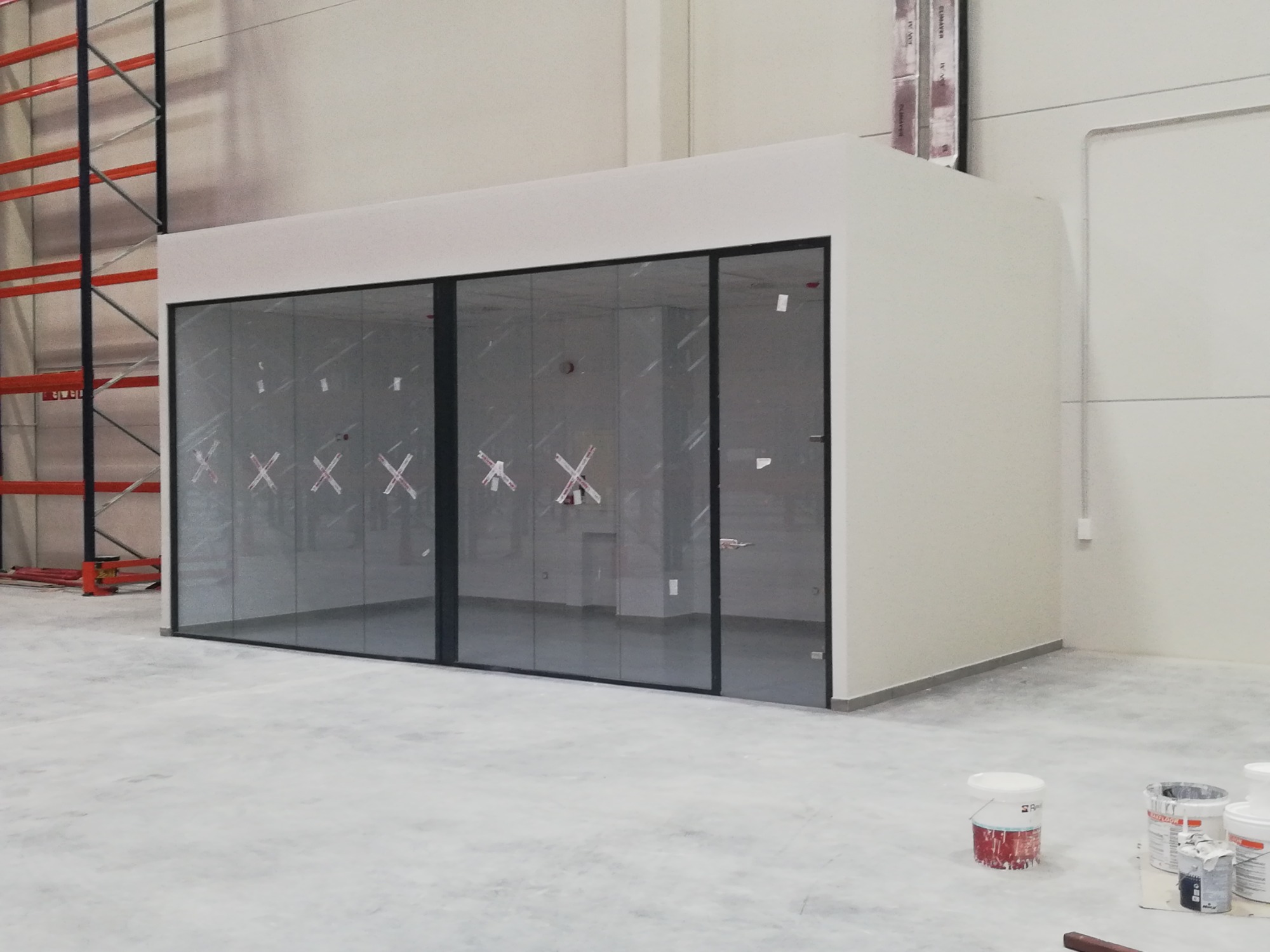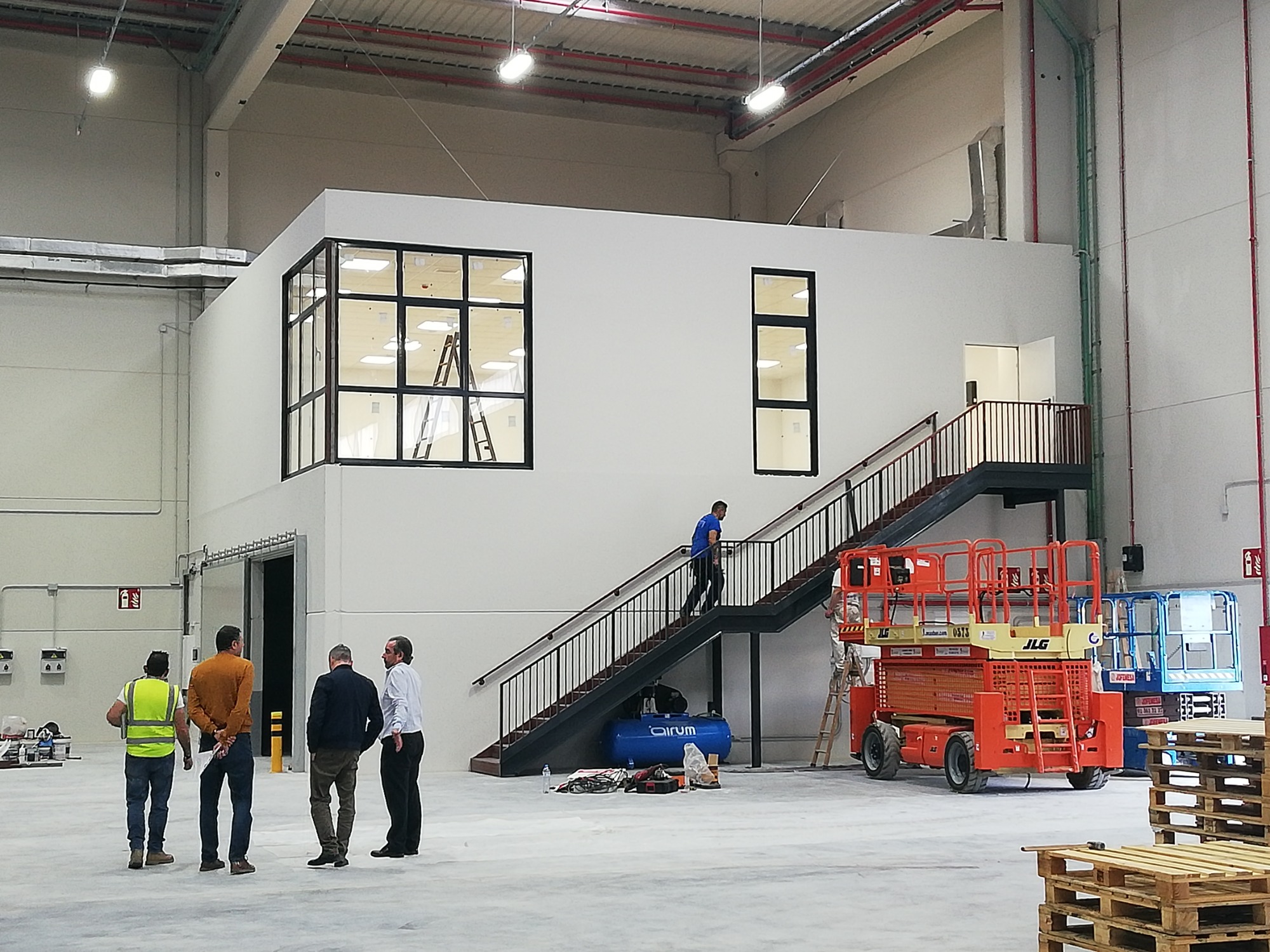 - Nave A: Formalización de oficinas operativas sobre sala de carga de baterías permitiendo la visualización libre del interior de la nave.